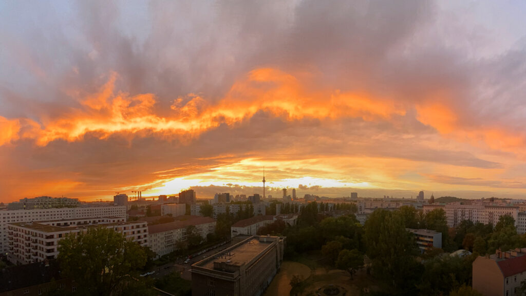Мокрые улицы блестят, небо переливается всеми цветами, а воздух свежий и живой. Берлин сегодня показал, как природа умеет удивлять и вдохновлять одновременно.
